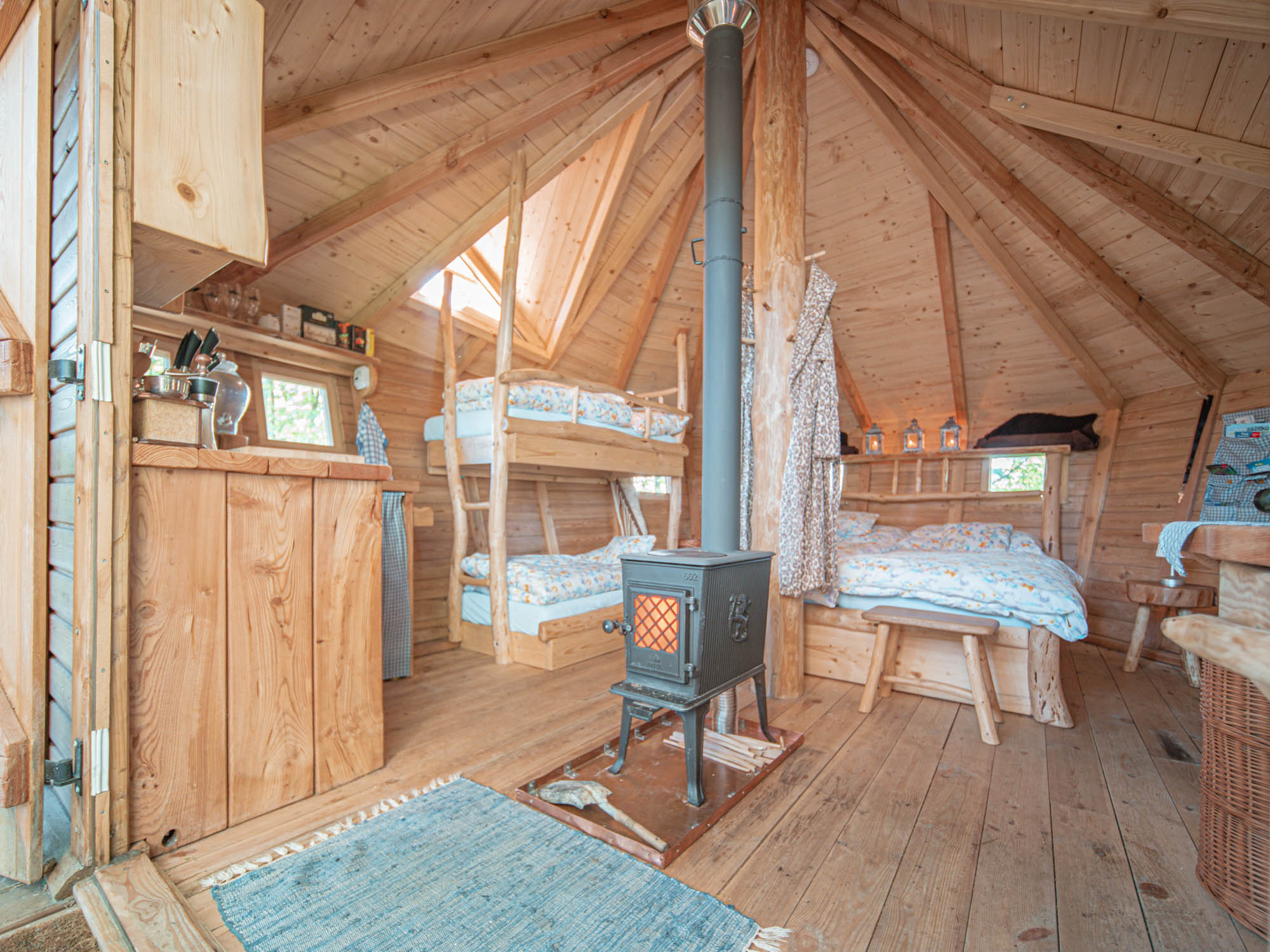 V tomto novém malebném příbytku je k dispozici minibar v kterém najdete kvalitní vína, sekty, prosseco, pivo a další alkoholické a nealkoholické nápoje. A teď to hlavní - uvnitř jsou i norská litinová kamínka na dřevo s kterými si tree house vyhřejete v zimním období na příjemnou teplotu 20 °C. Pro podzim a zimu je domeček vybaven kvalitními spacáky. Zní vám to také jako skvělý tip na výlet v zimě?