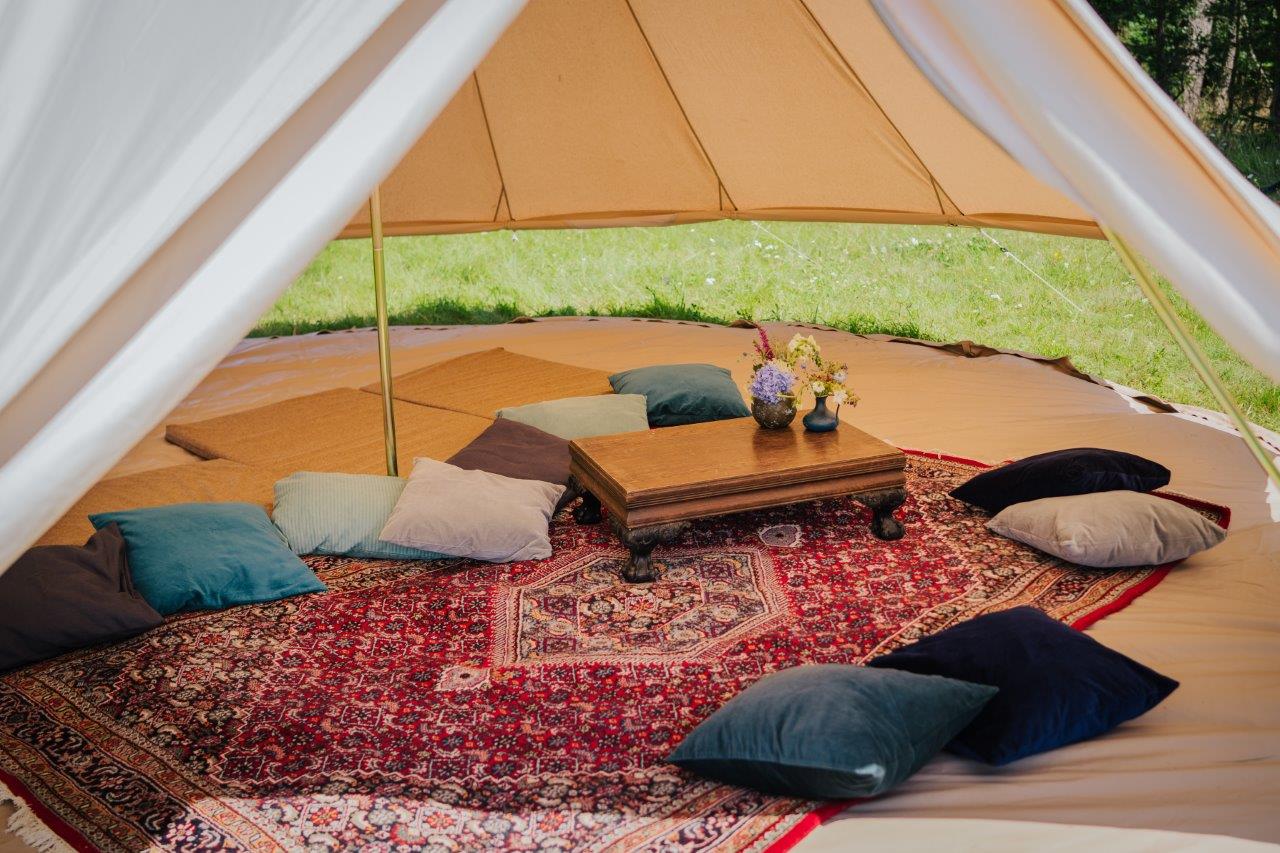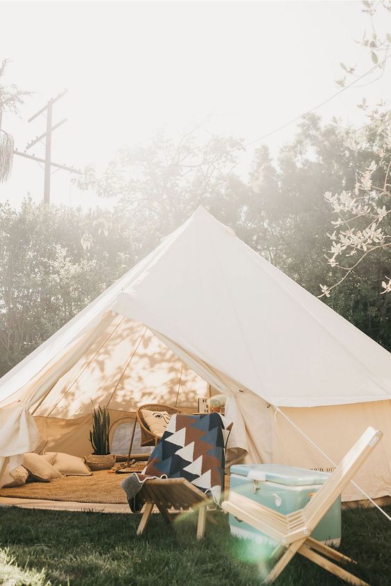 Věděli jste, že glampingové stany nemusí sloužit jen k ubytování? Využívají se i jako designový doplněk na různé akce. V horkém počasí nabídnou vytoužený stín, v dešti díky své nepromokavosti zase suchý přístřešek. Dolní část stanu se dá srolovat, což pomáhá cirkulaci vzduchu uvnitř stanu a zabraňuje přehřívání.