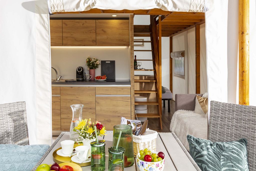 Za nás můžeme doporučit především glampingový stan Lilie, který má na svědomí náš partner Hast Retail. Stan vyniká rozhodně svou prostorností a pohodlím pro bydlení. Konkrétně? Moderní dispozice, podlahové topení, oddělené ložnice, plně vybavená koupelna a centrální obývací prostor s kuchyní a jídelním koutem s výhledem do přírody. Kombinace všech výše zmíněných dispozic vypovídá o jediném - z tohoto glampingu si odvezete maximální zážitek.