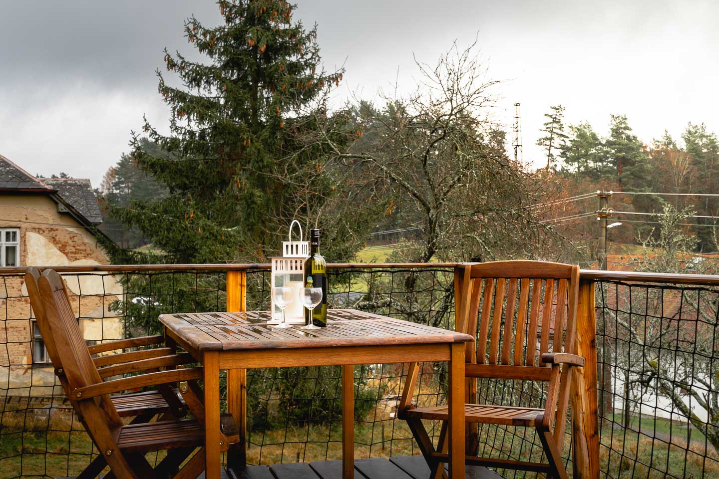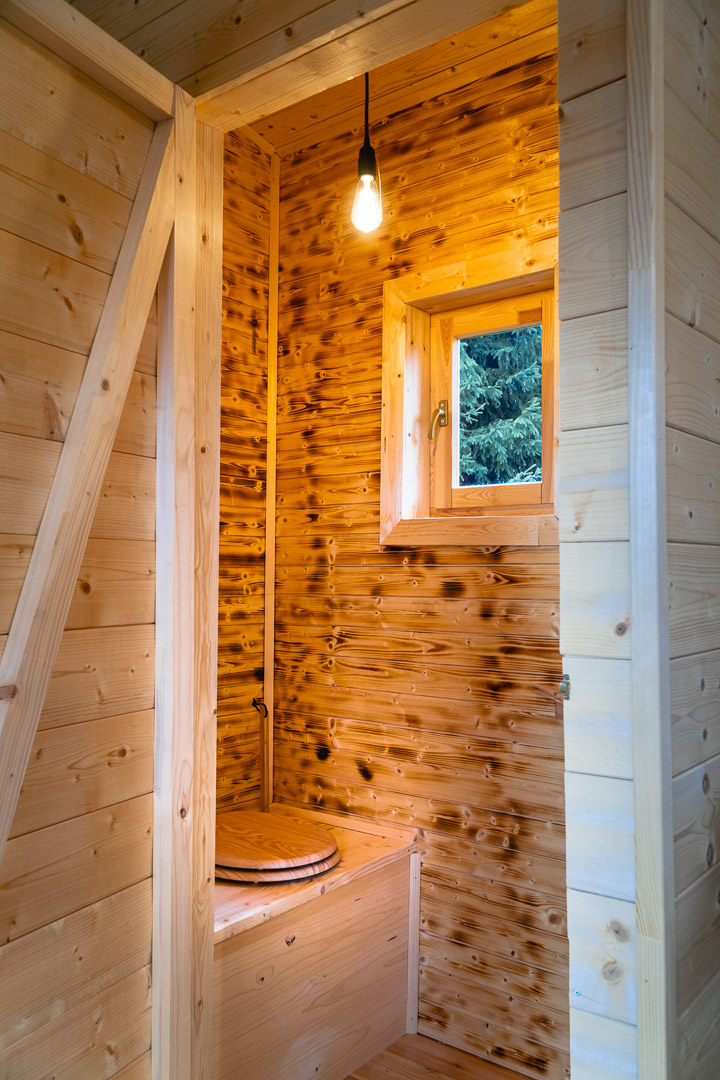 Toaleta je zde suchá ekologická, ale nechybí ani kadibudka. V hlavní sezoně je k dispozici venkovní sprcha ve spodní části domečku. V zimní a vedlejší sezoně jsou Vám k dispozici barely s vodou. Vždy jsou pro Vás připravené deky pro chladnější večery na terase a voňavě povlečené peřiny.